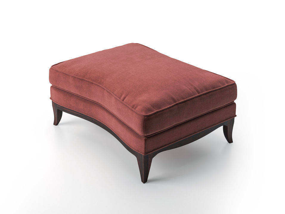 The Geneva collection is enchanting. Masterful grace abounds in these meticulously sculpted and exquisitely tailored pieces. The Papillon ottoman is fully upholstered, with welt detail. Apron and feet in finished wood. Available in all Donghia standard finishes on walnut wood in light or dark walnut finishes.